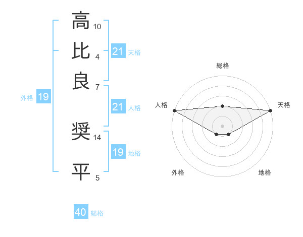 高比良 奨平さんの天格は21画の5点!