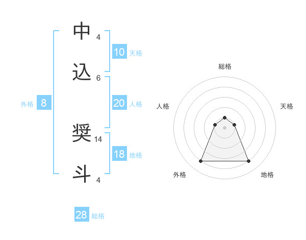 中込 奨斗さんを姓名の画数から五運を鑑定