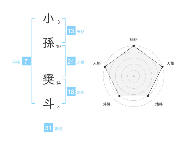 小孫 奨斗さんの総格は31画の5点!