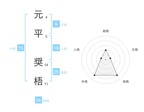 元平 奨梧さんを姓名の画数から五運を鑑定