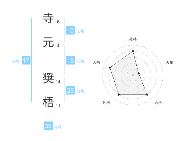 寺元 奨梧さんの総格は35画の4点!