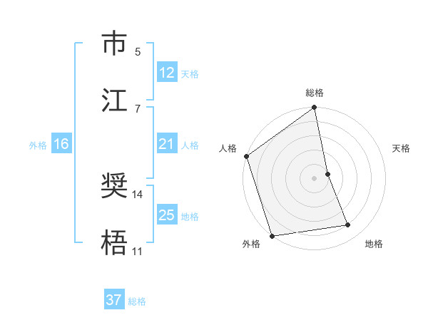 市江 奨梧さんの総格は37画の5点!