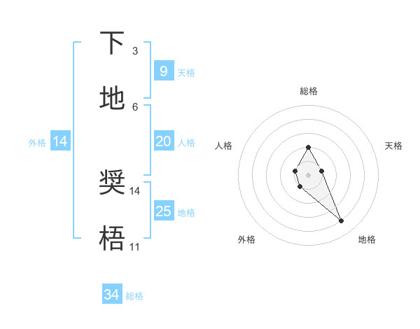 下地 奨梧さんを姓名の画数から五運を鑑定