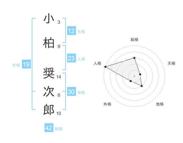 小柏 奨次郎さんを姓名の画数から五運を鑑定