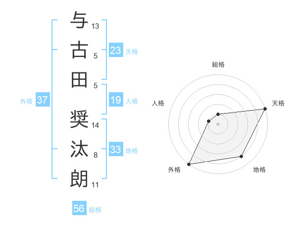 与古田 奨汰朗さんの外格は37画の5点!