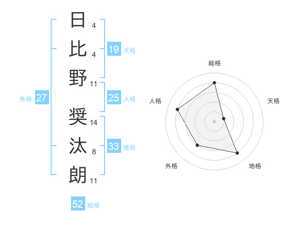 日比野 奨汰朗さんを姓名の画数から五運を鑑定