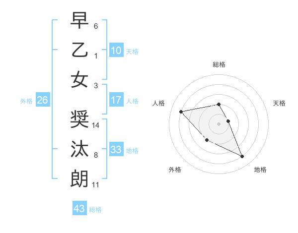 早乙女 奨汰朗さんを姓名の画数から五運を鑑定