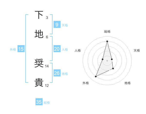 下地 奨貴さんの総格は35画の4点!