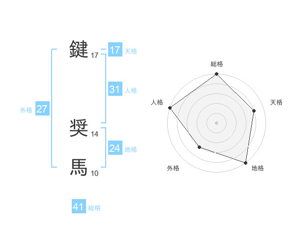 鍵 奨馬さんの総格は41画の5点!
