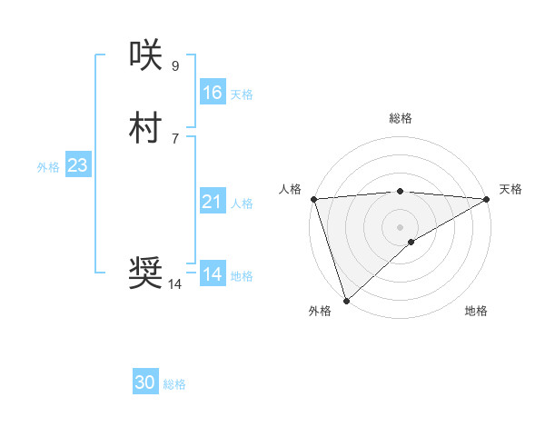 咲村 奨さんの総格は30画の2点!