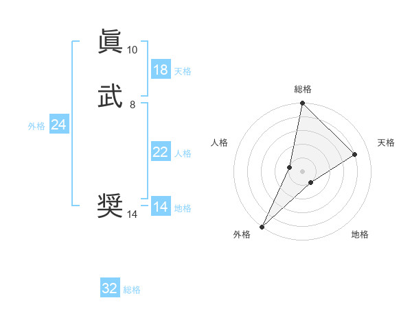 眞武 奨さんの天格は18画の4点!