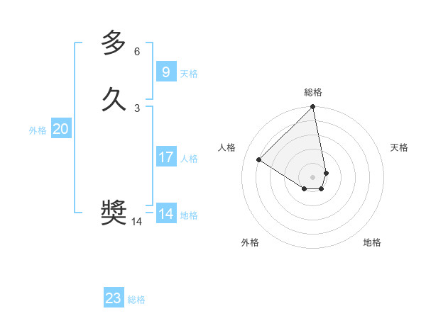 多久 奬さんの総格は23画の5点!
