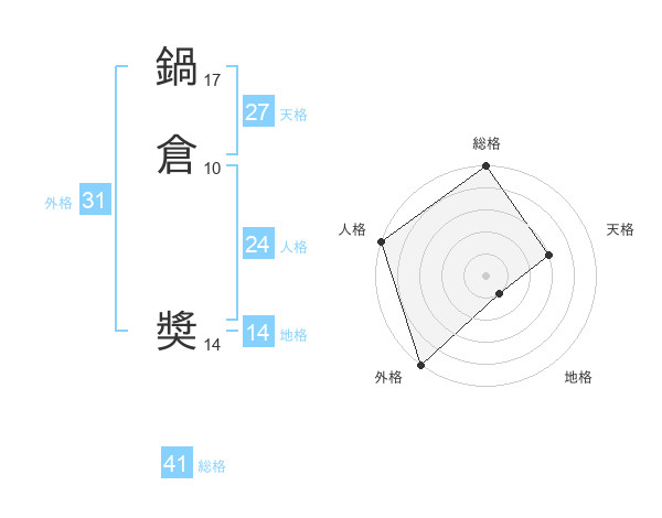 鍋倉 奬さんの外格は31画の5点!
