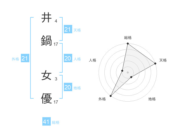 井鍋 女優さんの総格は41画の5点!