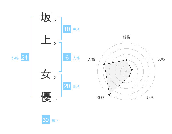 坂上 女優さんの総格は30画の2点!
