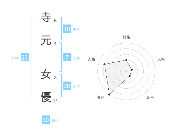 寺元 女優さんの地格は20画の1点!