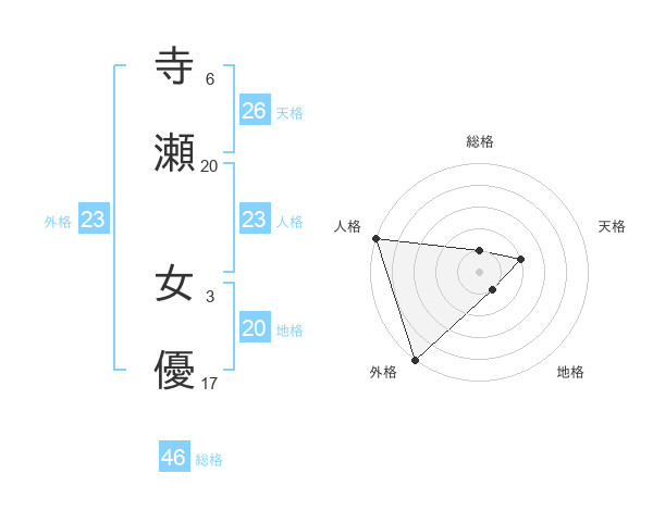 寺瀬 女優さんの総格は46画の1点!