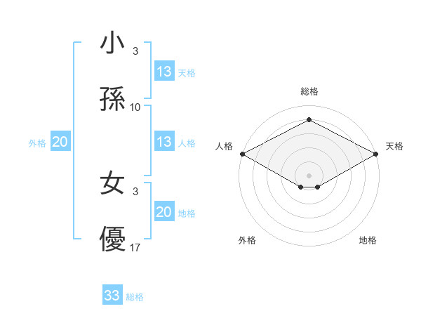 小孫 女優さんの天格は13画の5点!