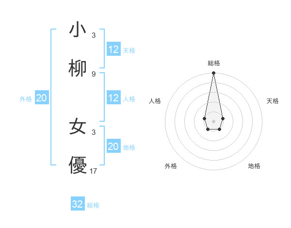 小柳 女優さんの地格は20画の1点!