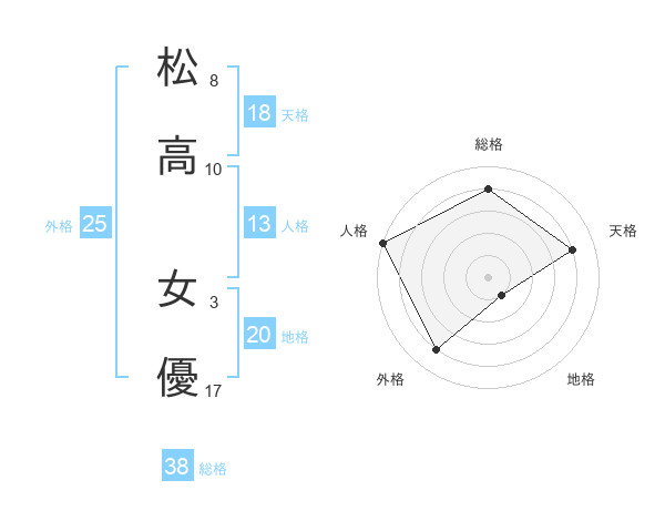 松高 女優さんの天格は18画の4点!