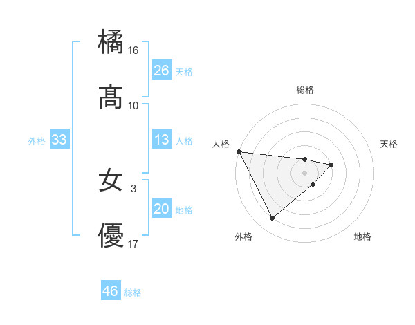 橘髙 女優さんを姓名の画数から五運を鑑定