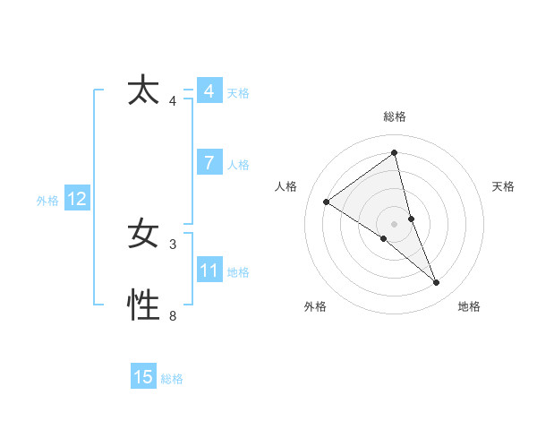 太 女性さんの総格は15画の4点!