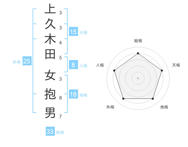 上久木田 女抱男さんを姓名の画数から五運を鑑定