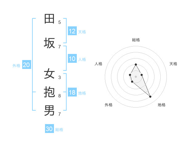 田坂 女抱男さんを姓名の画数から五運を鑑定