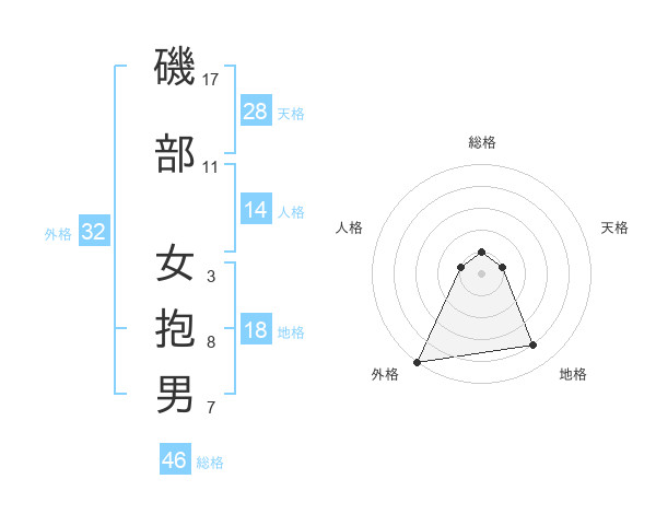 磯部 女抱男さんを姓名の画数から五運を鑑定