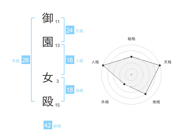 家系が持つ宿命的な運勢を表します。祖先から受け継いだ苗字ですので自分の力が及びません。家柄を象徴します。