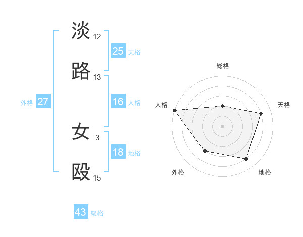 淡路 女殴さんを姓名の画数から五運を鑑定