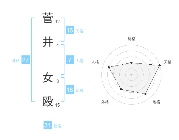 菅井 女殴さんを姓名の画数から五運を鑑定