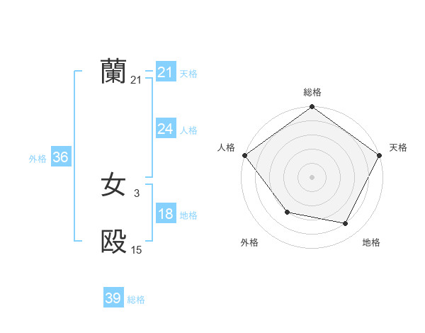 蘭 女殴さんの天格は21画の5点!