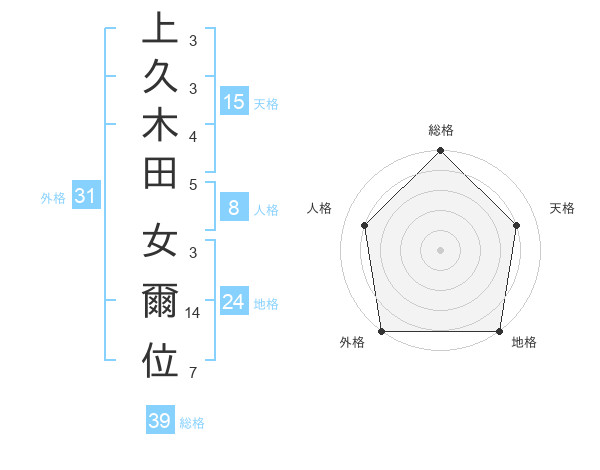 上久木田 女爾位さんの総格は39画の5点!