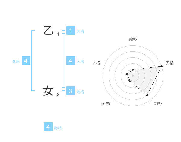 乙 女さんの地格は3画の4点!