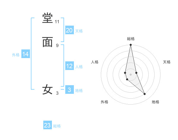 堂面 女さんの総格は23画の5点!
