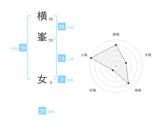 横峯 女さんの総格は29画の4点!
