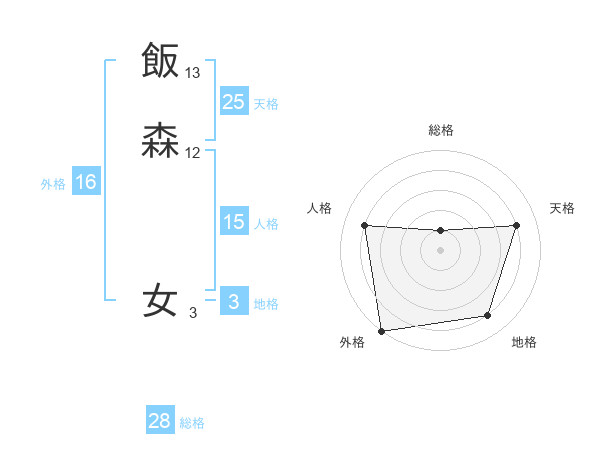 飯森 女さんの天格は25画の4点!