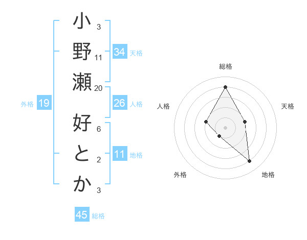 小野瀬 好とかさんを姓名の画数から五運を鑑定