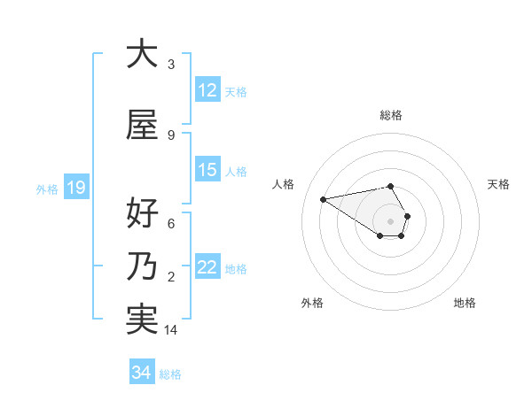 大屋 好乃実さんを姓名の画数から五運を鑑定