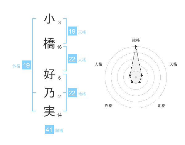 小橋 好乃実さんを姓名の画数から五運を鑑定