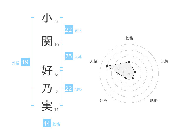 小関 好乃実さんを姓名の画数から五運を鑑定