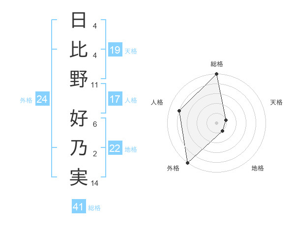 日比野 好乃実さんを姓名の画数から五運を鑑定
