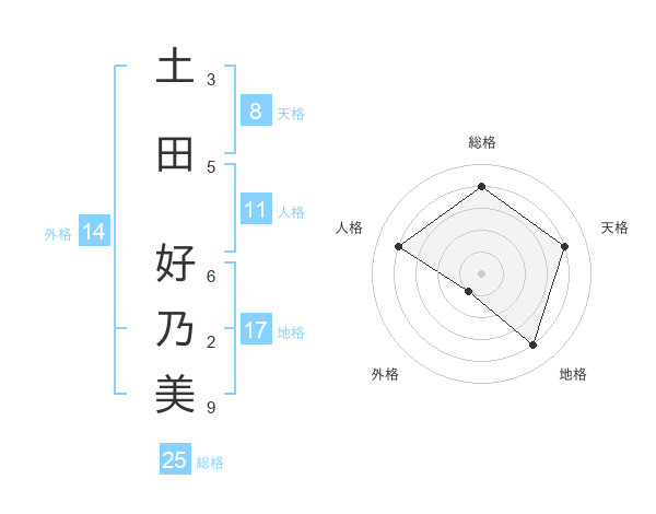 土田 好乃美さんを姓名の画数から五運を鑑定