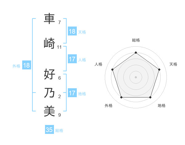 車崎 好乃美さんを姓名の画数から五運を鑑定