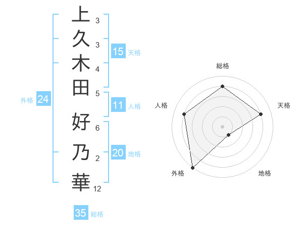 上久木田 好乃華さんを姓名の画数から五運を鑑定
