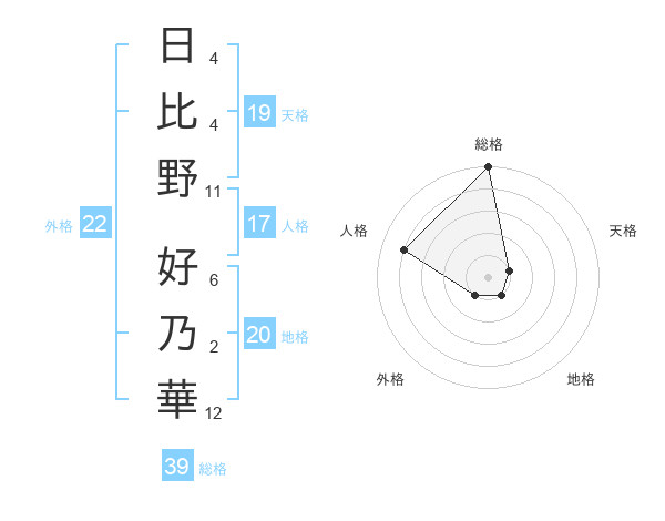 日比野 好乃華さんを姓名の画数から五運を鑑定