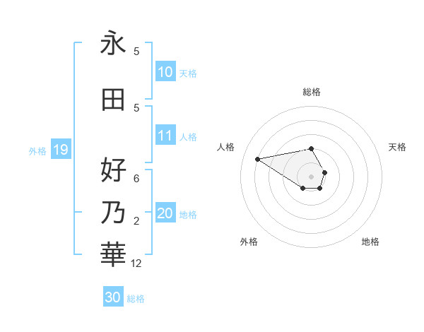 永田 好乃華さんを姓名の画数から五運を鑑定