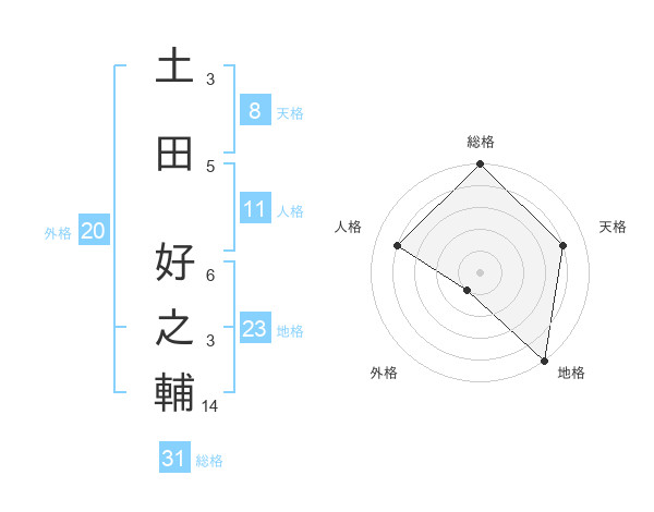 土田 好之輔さんを姓名の画数から五運を鑑定