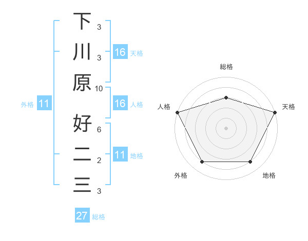 下川原 好二三さんを姓名の画数から五運を鑑定